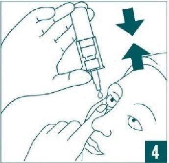 Закрапайте 1–2 краплі в око, кліпніть оком декілька разів, щоб розчин рівномірно розподілився поверхнею ока. Препарат не містить консервантів, тому він є безпечним для очей.